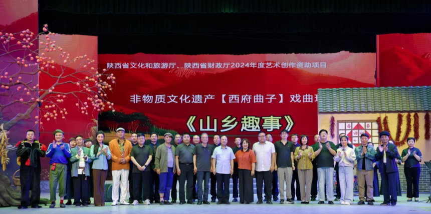 陕西省艺术创作资助项目:西府曲子现代戏《山乡趣事》首演暨验收研讨会召开2025年5月24日下午,陕西省文化和旅游厅、陕西省财政厅2024年度陕西省艺术创作资助项目、西府曲子现代戏《山乡趣事》在宝鸡西凤酒剧院首演。该剧以脱贫后的山乡为背景,用轻喜剧形式展现移风易俗主题,融合了非遗传承与现实主义表达。首演后,项目验收评审专家与主创举行了研讨会,肯定了《山乡趣事》艺术创新与现实意义,并提出了下一步打磨提升的建议。